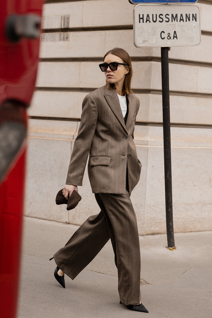 Blazer in regulärer Passform aus bedruckter Wolle mit Nadelstreifenmuster, doppelter Knopfleiste und Innenfutter.